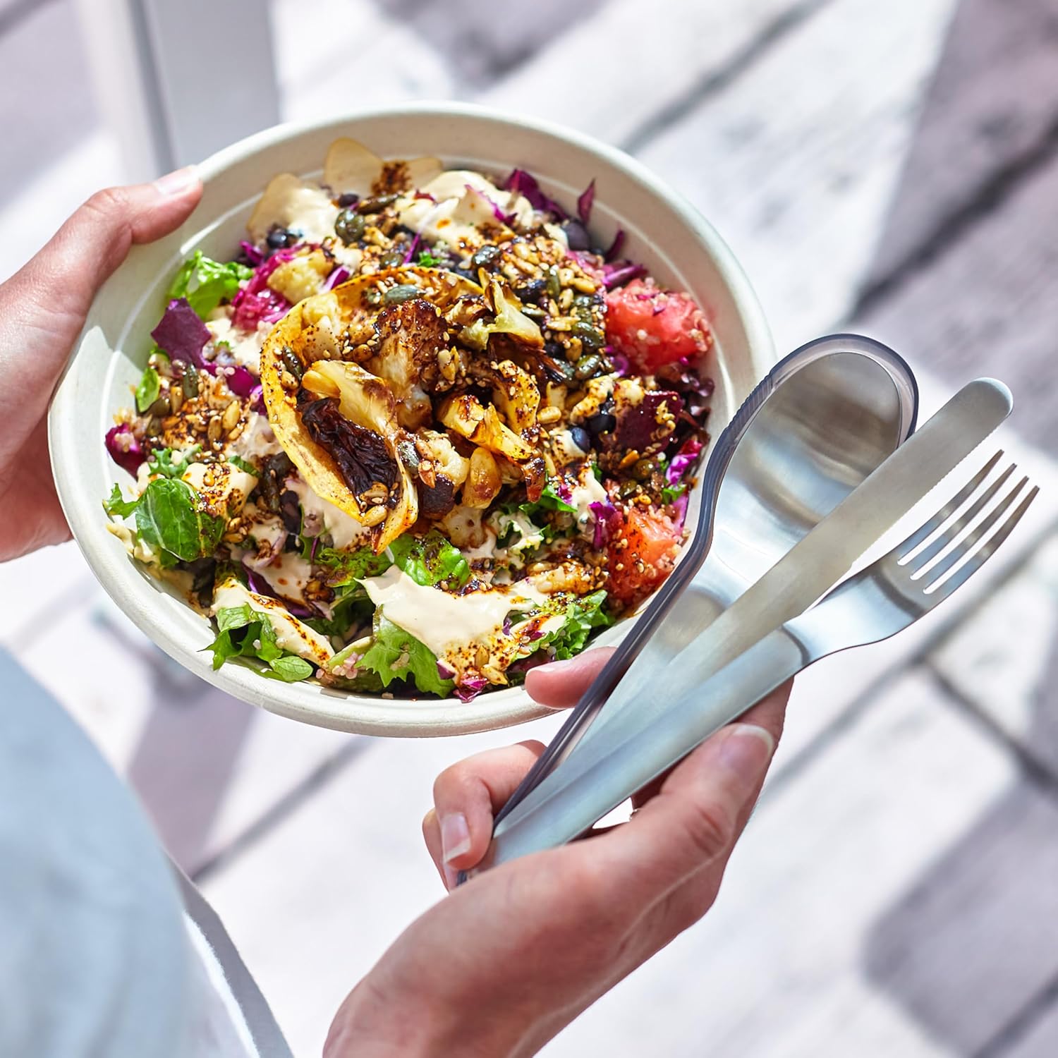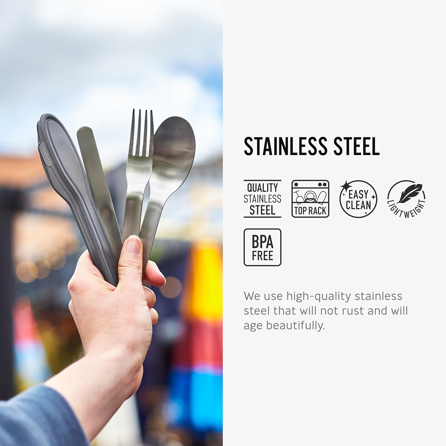 این ست کاربردی برای افرادی که وعدههای غذایی خود را در مسیر مصرف میکنند، بسیار مناسب است. طراحی جمعشونده و قاب محکم آن حمل را راحت میکند و با کیفیت بالای استیل، دوام طولانی دارد.