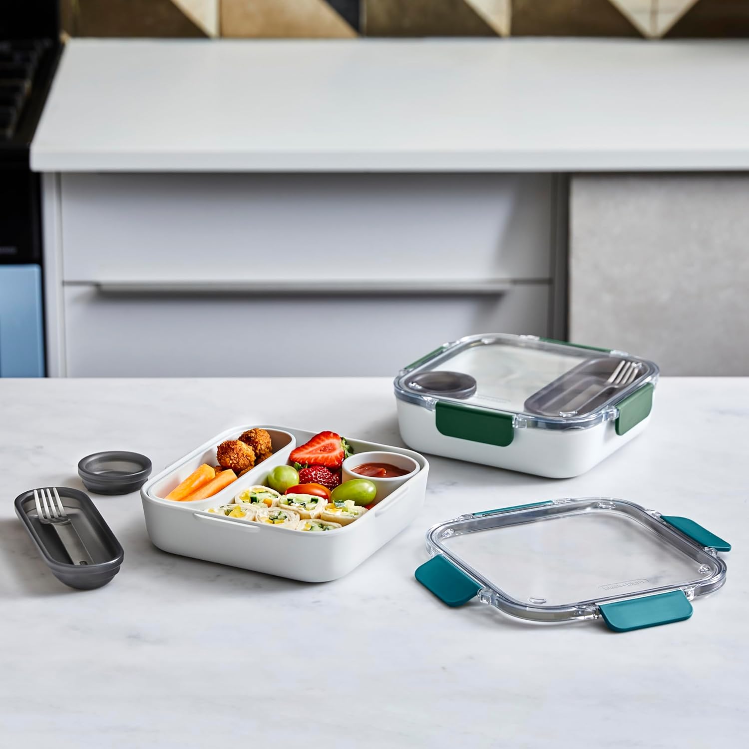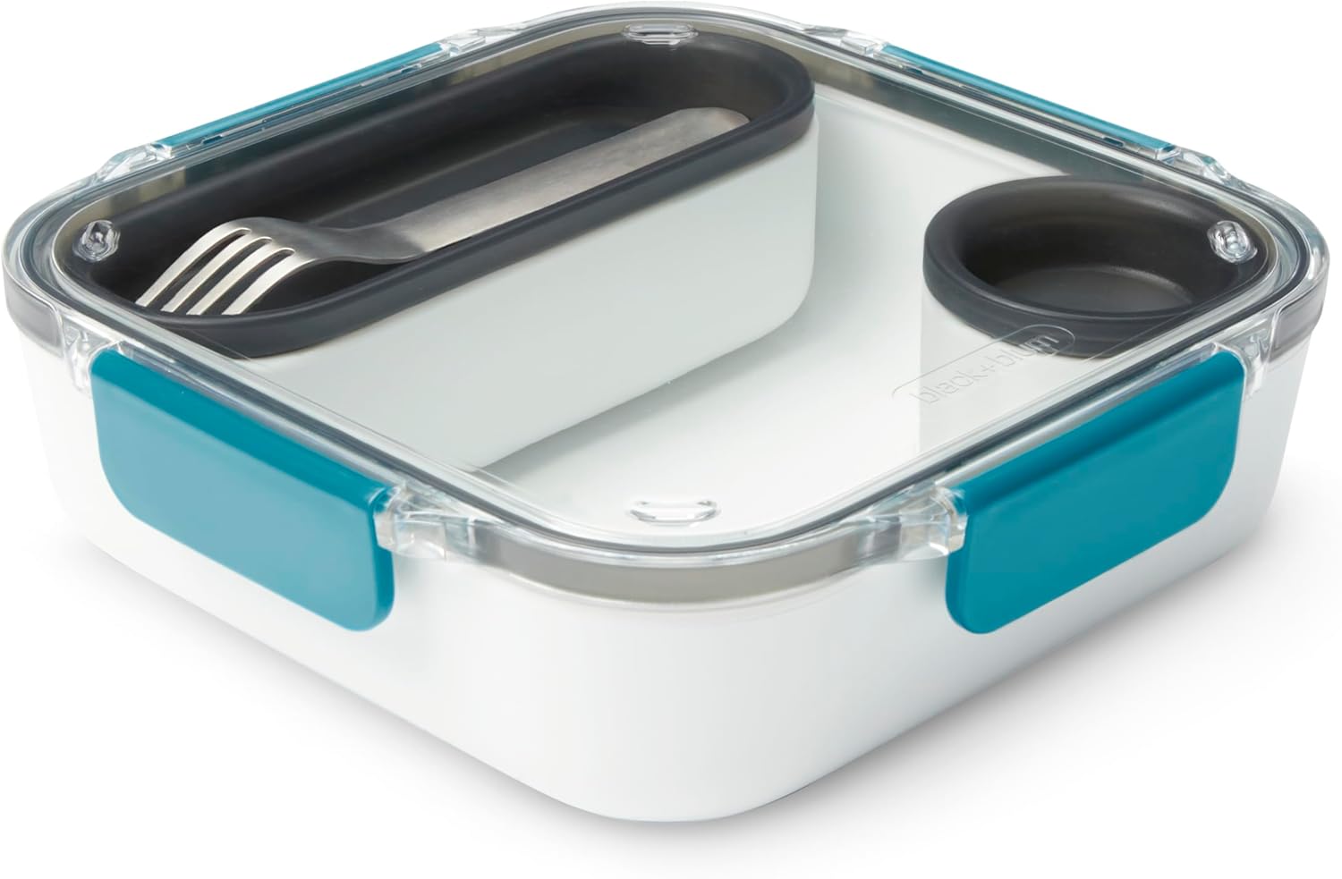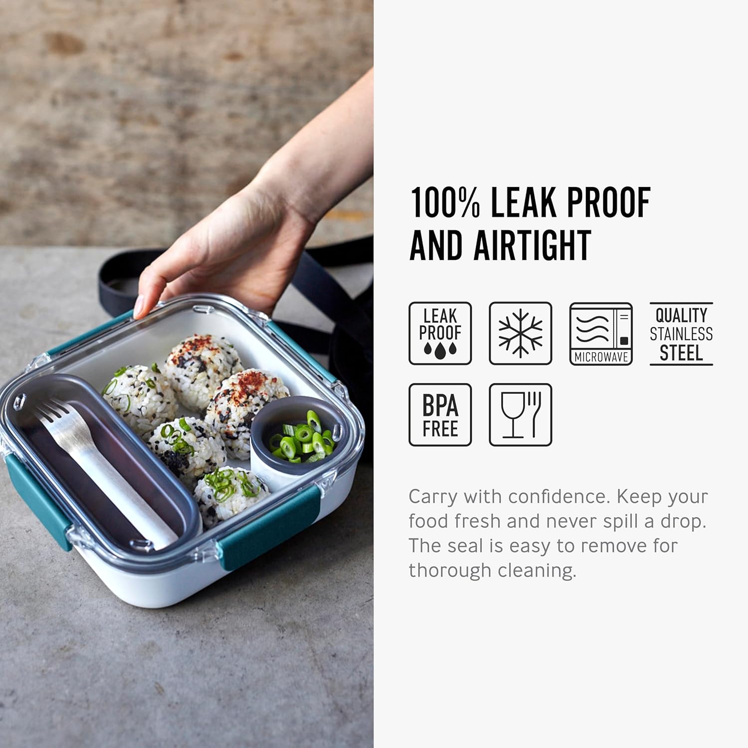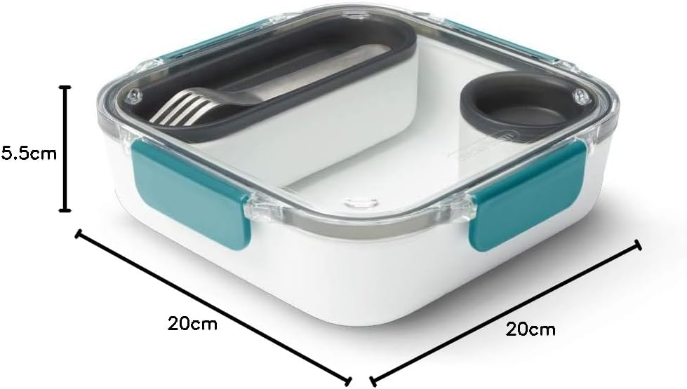 • حمل آسان + خوردن راحت – چه برای ساندویچ نیاز داشته باشید، چه میوه، تنقلات سالم، سس‌ها، تزئینات غذا یا باقی‌مانده غذاها را جدا نگه دارید، بخش‌های داخلی ۱۰۰۰ میلی‌لیتری نیاز شما را برطرف می‌کنند. این جعبه غذا با یک چنگال سفری استیل ضدزنگ ارائه می‌شود.