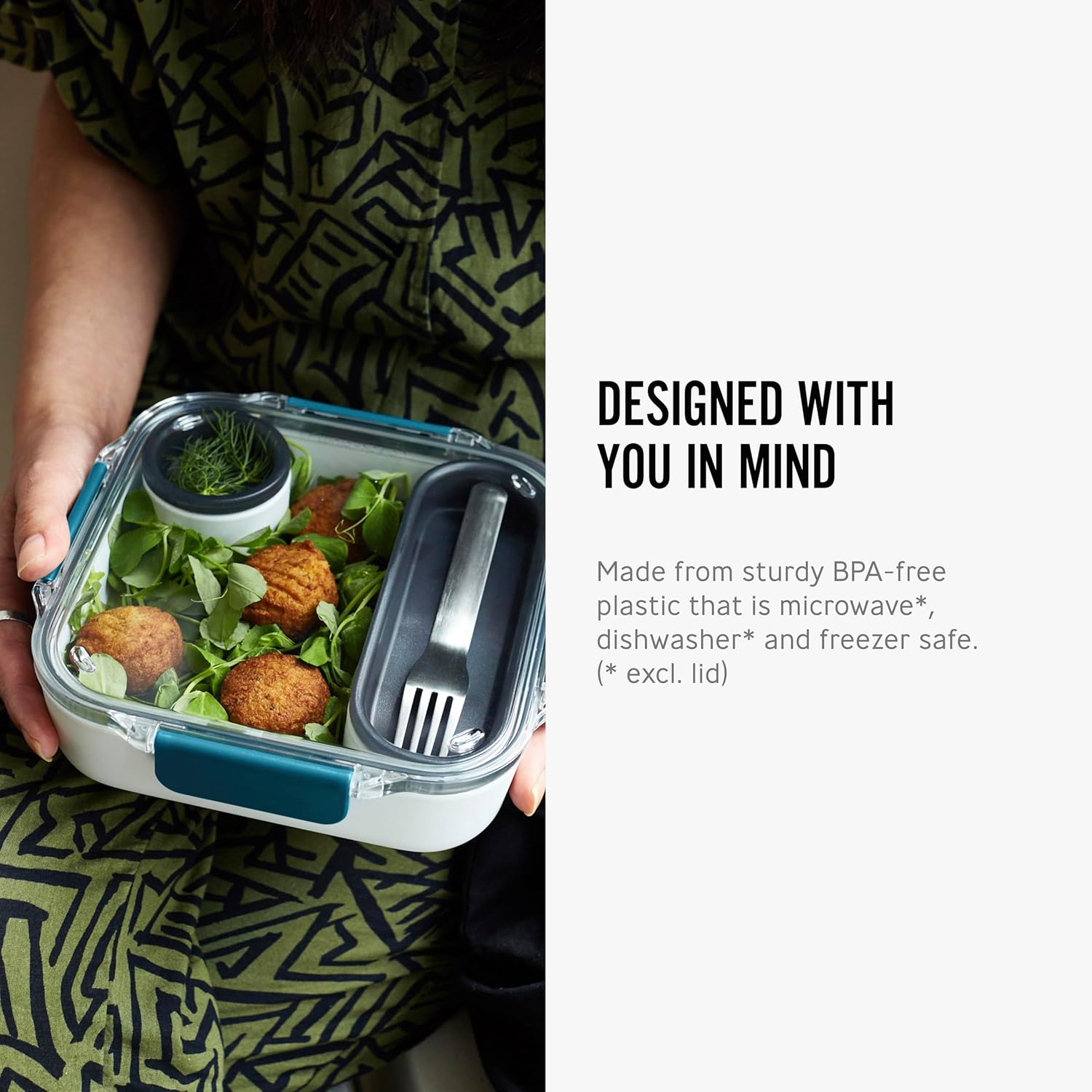 • بخش‌بندی + ظرف سس – مواد غذایی را جدا از هم نگه دارید! ظرف غذای Lunch Box Original دارای یک ظرف داخلی و یک ظرف سس درب‌دارِ آب‌بند (به‌همراه بخش مخصوص تزئین در درِ آن) است که سازمان‌دهی غذا را آسان می‌کند. ایده‌آل برای آماده‌سازی وعده‌ها و ارائه زیبا.