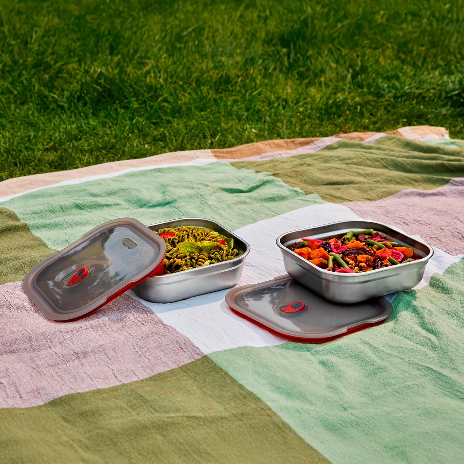 ضدنشت و کاملاً درزبند – مجهز به یک حلقه سیلیکونی در دور لبه ظرف برای جلوگیری از ریزش. درِ وکیومدار کاملاً ضدنشت بوده و غذای شما را برای مدت طولانیتری تازه نگه میدارد.