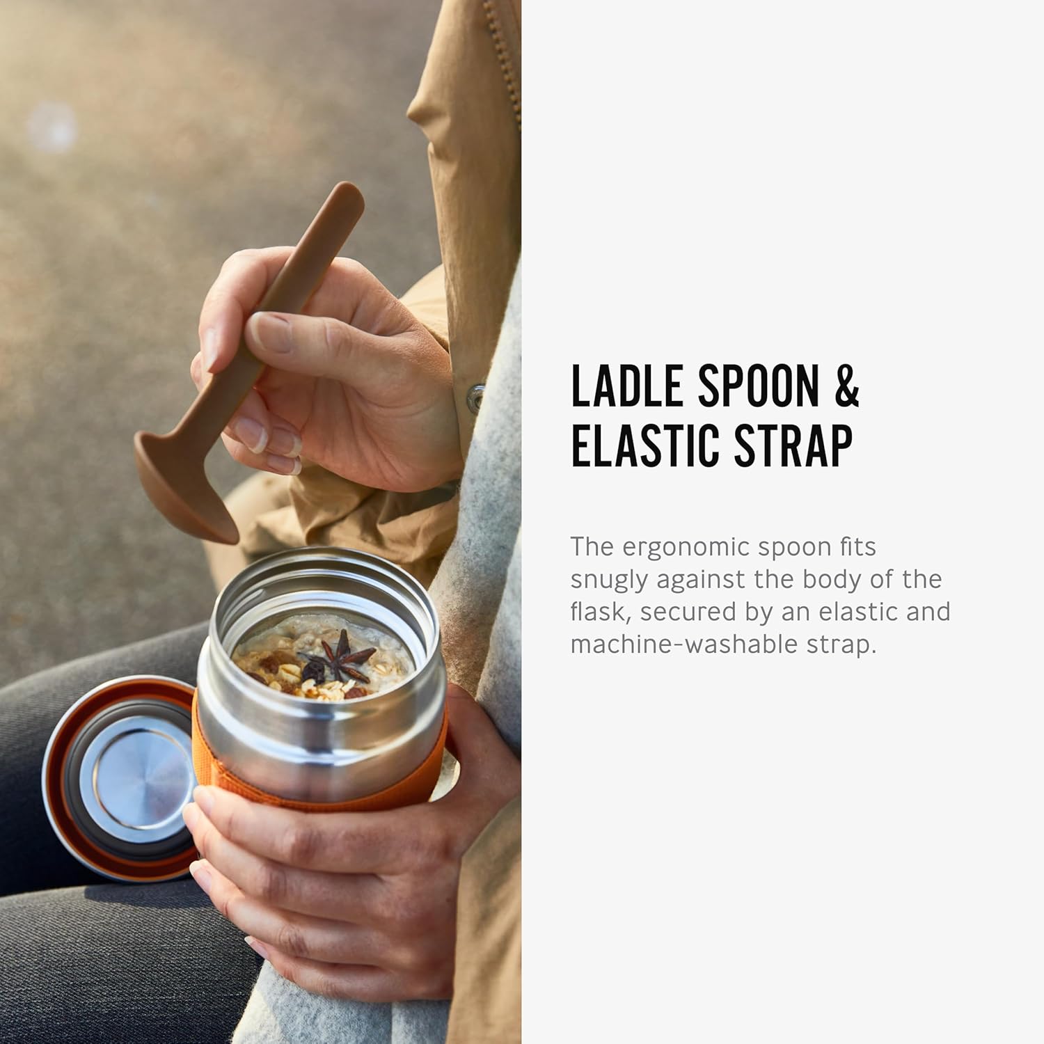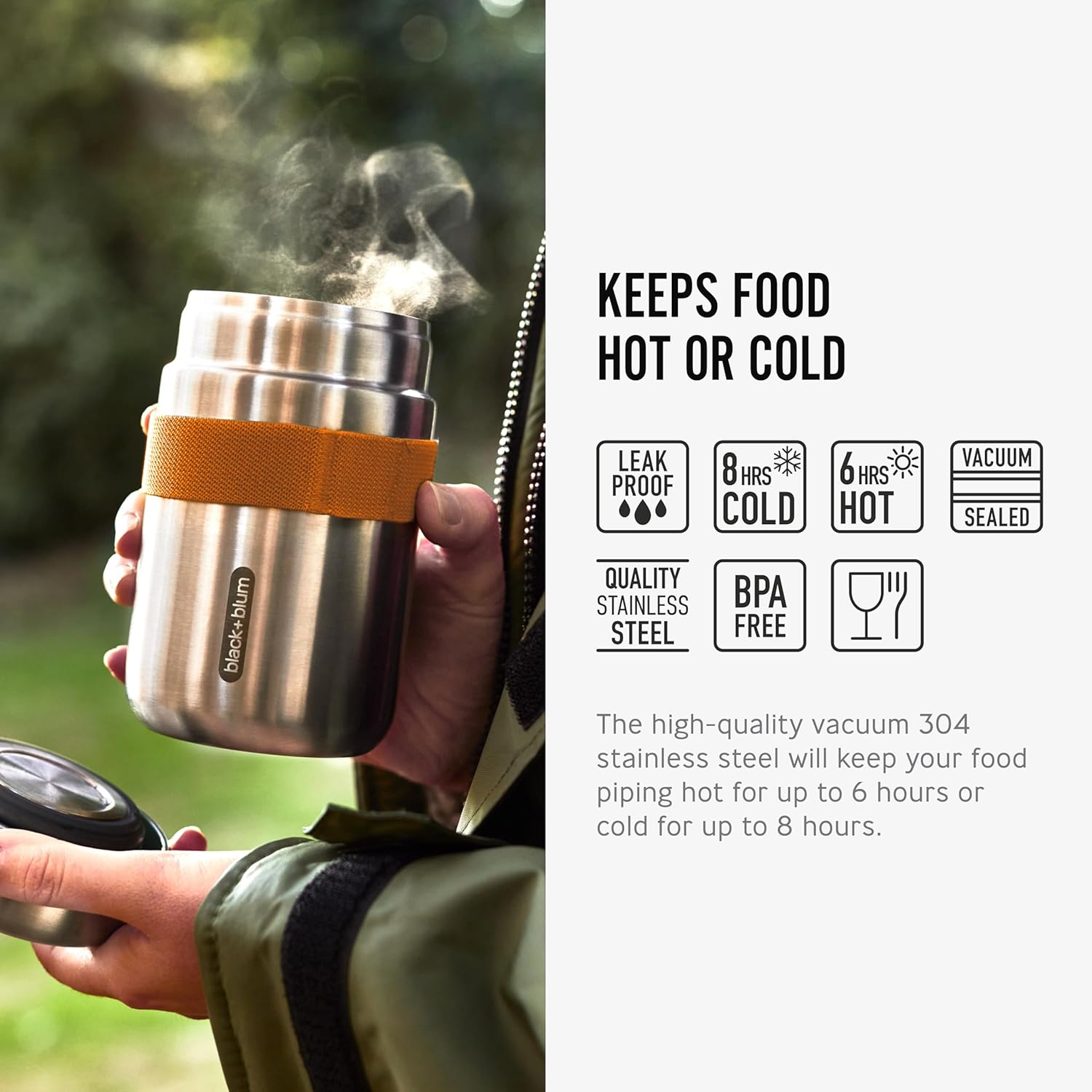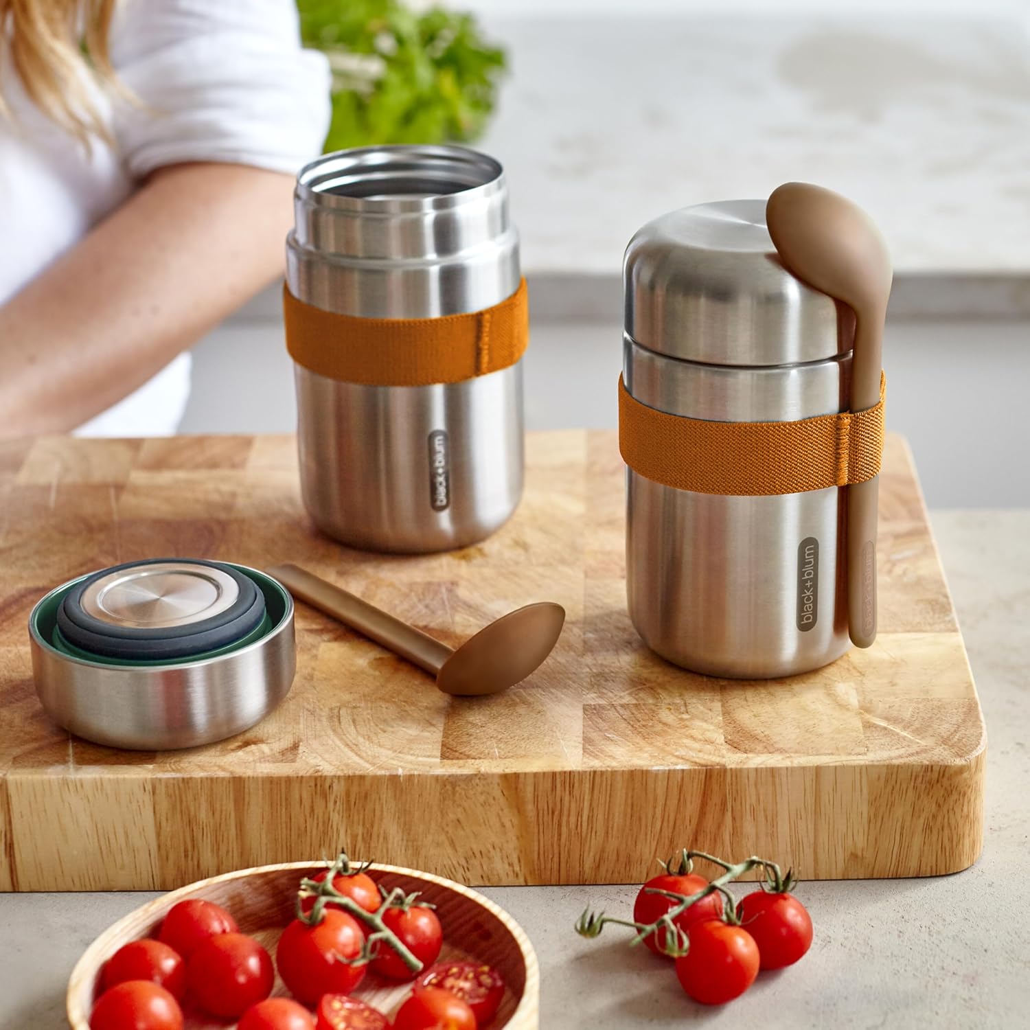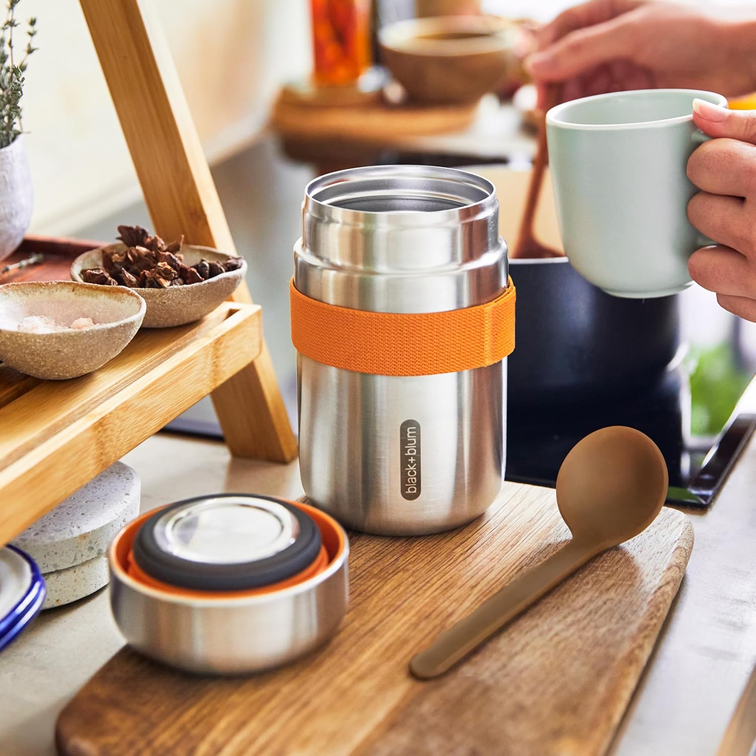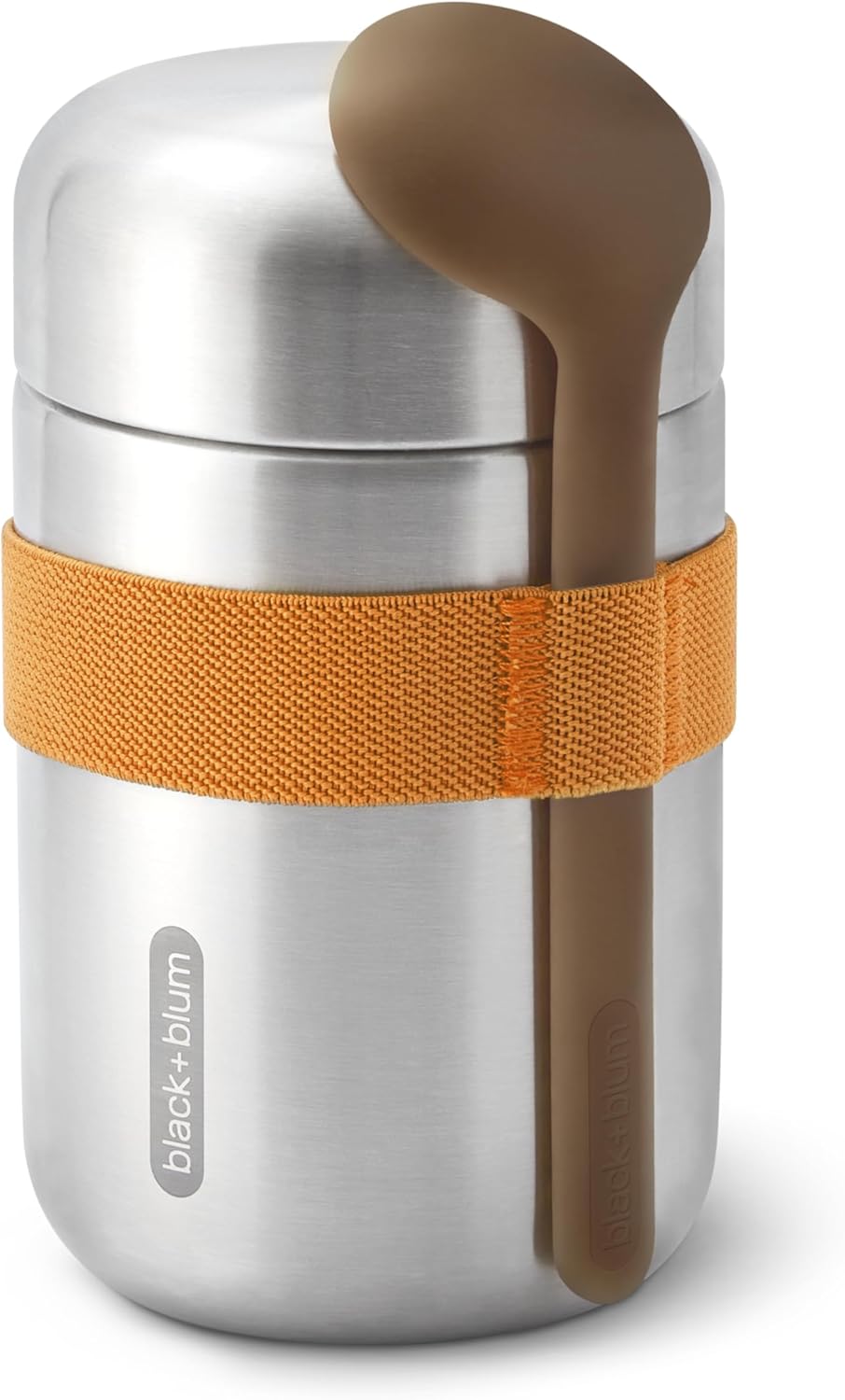 Black+Blum فلاسک غذای پرفروش خود را بهروزرسانی کرده و درب آن را با پایهای از استیل ضدزنگ جایگزین کرده است تا غذا دیگر با پلاستیک تماس نداشته باشد. قاشق همراه از الیاف چوبی با منبع پایدار ساخته شده و محصول در یک جعبه هدیه عرضه میشود.