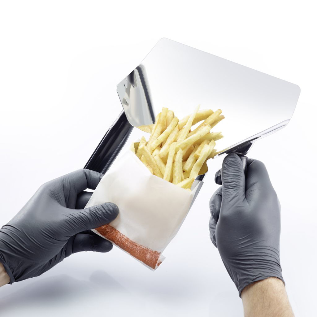 این کفگیر حرفه‌ای ساخته شده از استیل ضد زنگ مقاوم، مناسب استفاده سنگین در آشپزخانه‌های حرفه‌ای است. با کمک آن می‌توانید به سرعت و بدون زحمت کیسه‌ها، کاسه‌ها، سبدها یا بشقاب‌ها را در رستوران‌ها یا فست‌فودها با سیب‌زمینی سرخ‌کرده پر کنید. همچنین برای استفاده در سینماها برای پر کردن کیسه‌های پاپ‌کورن با سرعت بسیار بالا بسیار مناسب است. با دو دسته ارگونومیک پلاستیکی، این کفگیر برای استفاده جهانی توسط کاربران راست‌دست و چپ‌دست مناسب است و طراحی قیفی آن، پر کردن دقیق و بدون خطا را تضمین می‌کند. همچنین برای پر کردن کیسه‌های چای، قهوه، برنج و موارد دیگر نیز مناسب است.